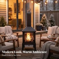 Modern Black Powder Coated Metal Fire Pit Table – Square Wood Burning Stove Heavy Duty Rustproof Outdoor Patio Garden BBQ Party $615.30
