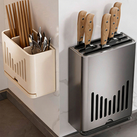 Kitchen stainless steel knife holder, non-punching wall-mounted household chopsticks, spoon, knife drain storage rack $33.68