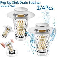 2/4Pc Pop Up Sink Drain Strainer Stainless Steel Bathroom Kitchen Sink Plug Filter Drainage Hair Catcher Insect Prevention Tool $7.49