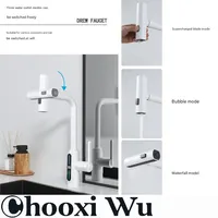Faucet Stainless Steel Kitchen Intelligent Digital Display Faucet, Pull-out Hot and Cold Rain Waterfall Washing Basin Faucet $53.13
