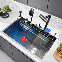 Kitchen Sink Stainless Steel Piano Button Waterfall Faucet Digital Display Multifunctional Washing Vegetables Large Single Slot $482.16