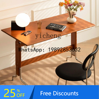 Medieval desk long desk ins wind computer table pure solid wood dining table simple writing desk stainless steel
