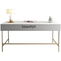 Simple Desk Office Home Computer Desk Stainless Steel Gold-Plated Stone Plate Desk Solid Wood Table