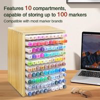 Marker Organizer for 100 Markers, Wooden Desk Storage Organizer Rack,Desk Storage Rack for Markers,Pencil box penholder