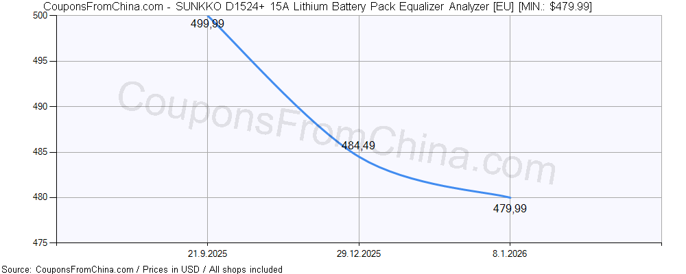 Click on image to enlarge. ![SUNKKO D1524+ 15A Lithium Battery Pack Equalizer Analyzer [EU] price history Price history for SUNKKO D1524+ 15A Lithium Battery Pack Equalizer Analyzer [EU]](https://couponsfromchina.com/pricehistory/History54165.png)