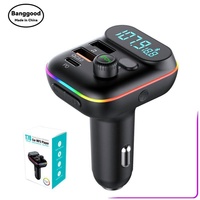 T70 bluetooth V5.0 FM Transmitter 20W PD + QC3.0 USB Car Charger 9 Colors RGB Backlit Light Larger LCD Digital Display Wireless Radio Adapter HiFi Music Play Car Kit With Mic
