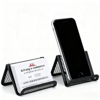 2-in-1 Metal Business Card Holder & Cellphone Stand Desktop Name Card Organizer with Desk Tablet Stand Black/Silver Available