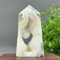 Crystal Natural Black Agate Tower Druzy Point Healing Polished Obelisk Gemstone Minerals Reiki Wicca Geode Room Decoration
