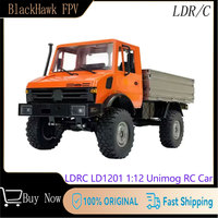 LDRC 1201 1/12 2.4G 4WD RC Car Unimog with Differential Lock Two Speed Metal Transmission Gearbox LED Light Military Climbing Truck Full Proportional Vehicles Models Toys – Three Batteries