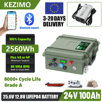 24V LiFePo4 Battery 100Ah 150Ah 200Ah 2560Wh 12V Lithium Battery Built-in Bluetooth BMS 6500+ Cycles No Tax For RV Solar Energy