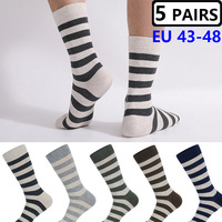 5 Pairs Plus Size EU 46,47,48 Men Socks Colorful Striped Combed Cotton Dress Casual Big feet Large Socks Male Mid Long Tube Sock $12.31