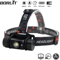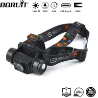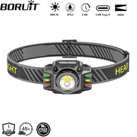 BORUiT G7 LED Motion Sensor Mini Headlamp Type-C Rechargeable Headlight Red Warning Light Head Torch Waterproof Camping Lantern – Black