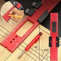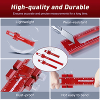 Carpentry Marking Tool Red Precision T Type Ruler Inch Metric With Slide Stop For Woodworking Measuring Pocket Size