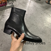 2025 New Business Casual Height Increase Round Toe Shoes British Style Thick Sole Men’s Short Boots Black