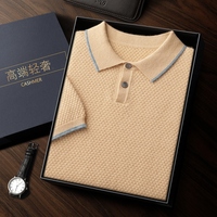 Short sleeved cashmere sweater men’s casual cashmere simple half sleeved polo collar T-shirt knitted sweater high-end business