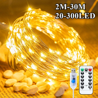 2M-30M LED String Lights USB Copper Silver Wire Garland Light Waterproof Fairy Lights for Christmas Wedding Party Decorative
