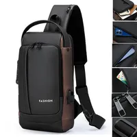 BANGE Solid Chest Bags Men Multi-Layers Sling Crossbody Bag Waterproof Chest Bag USB Charging Port Casual Shoulder Bag for Male