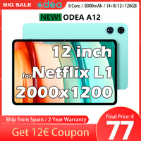 【New】Odea A12 Tablet, 12 Inch Tddi 2K 2000X1200, Android 14, (4Gb+8Gb)12Gb Ram, 128Gb Rom, Unisoc T606, 8 Cores, Mali-G57, 8000Mah, 13Mp+8Mp, Tf up to 1Tb, Type C, Widevine L1 $128.90