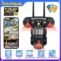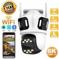 Three Lens 6K 12MP WIFI IP Camera Waterproof Three Screen PTZ CCTV Camera Color Night Vision Motion Detection Security Surveillance Cam