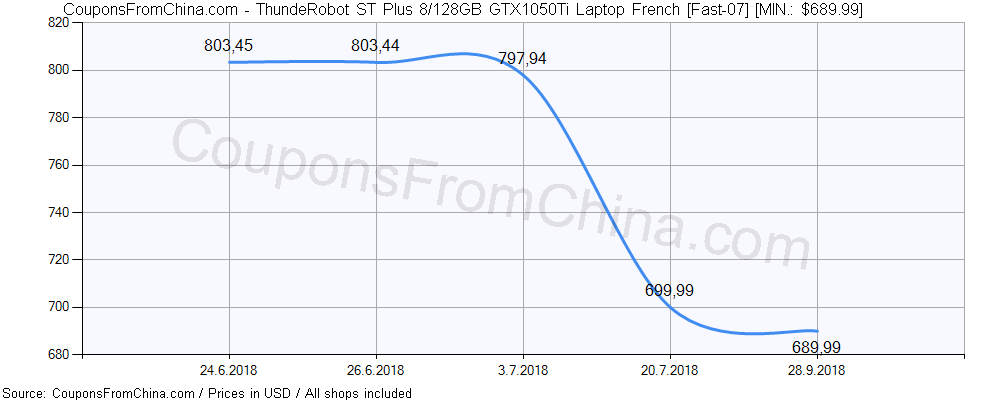 Click on image to enlarge. ![ThundeRobot ST Plus 8/128GB GTX1050Ti Laptop French [Fast-07] price history Price history for ThundeRobot ST Plus 8/128GB GTX1050Ti Laptop French [Fast-07]](https://couponsfromchina.com/pricehistory/History6897.png)