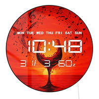 Red Wine Music Notes LED Digital Clock Timer Wall Desk Use Auto Dimming 12/24hr Electronic Clock with Calendar Date Temperature