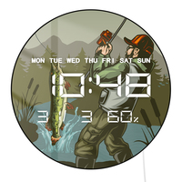 Largemouth Bass Fish Fishing Electronic Wall Clock with Timer Calendar Date Temperature Humidity LED Digital Display Wall Clock