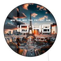 Paris Skyline Modern Design Electronic Wall Clock with LED Auto Dimming Digital Timer Date Temperature Humidity Calendar Display