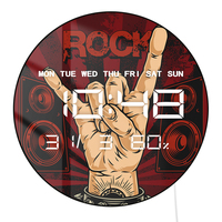 Rock Hand Music Sign Rock n Roll Electronic Wall Clock with Calendar Timer Date Temperature Large LED Digital Display Wall Clock