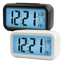 1/2pcs Smart Digital Alarm Clock Black White Lcd Display With Temperature Calendar Timer Led Light Home Office Travel Desk Clock
