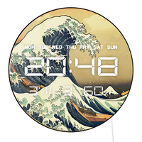 The Great Wave Large Electronic Wall Clock Retro Japanese Home Decor LED Digital Wall Clock Timer with Temperature Calendar Date
