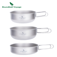 Boundless Voyage Titanium Camping Cooking Set Pot Pan Bowl Kit Outdoor Picnic Tableware Foldable Handle