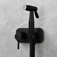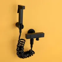 Black Painted Matte Brass Wall Mount Bidet Set with Spring Hose High Pressure Nozzle Faucet Spray Gun for Sanitary Ware Toilet $77.26