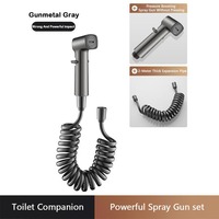 Zinc Alloy High Pressure Bidet Sprayer Set Bathroom Toilet Cleaner Spray Gun with 1 in 2 out Angle Valve Grey/Silver/Black