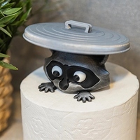 Adorable 3D Printed Raccoon Toilet Roll Paper Holder Plastic Playful Bathroom Decor Tissue Holder with Lid Decoration