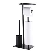 Toilet Roll Holder with Toilet Brush Stainless Steel Toilet Roll Holder Free Standing Toilet Paper Holder and Toilet Brush Black