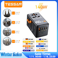 TESSAN 65W/100W/140W GaN Universal Travel Adapter With USB & Type-C All-in-1 Adapter Fast Charger EU/UK/USA/AUS Plug for Travel $23.61