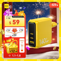 140W GaN PD3.1 USB Type C Fast Charger Multiple Ports QC4.0 PD Quick Charger For Macbook Laptop iPhone 17 16 Samsung S25 Ultra $35.64