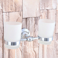 Wall Mounted Polished Chrome Double Cup Holder Toothbrush Holder with Two Glass Cups Rack Tumbler Holder Nba797 $41.18