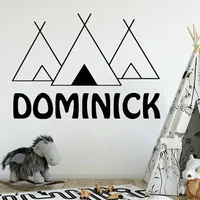 Custom Name Wall Sticker Triangle Geometric House Vinyl Decal Babys Kids Bedroom Wall Decoration Tent Pattern Art Mural $4.53