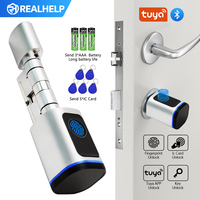 Tuya BLE Smart Electronic Door Lock DIY Cylinder Core Fingerprint APP Keys IC Card Unlock for Home Hotels Security Silver Color – Silver A50+B50