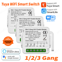 TUYA WiFi Mini Smart Switch Module 1/2/3/4 Gang 2-way Control Smart Home Timer Switch Voice Control Via Alexa Google Assistant $5.50