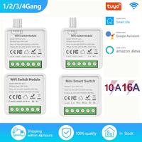 TUYA WiFi Mini Smart Switch 1/2/3/4 Gang 2-Way Control Smart Home Automation DIY Switch Module Voice Control Via Alexa Google $10.78