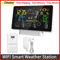 Tuya WiFi Weather Station Color Screen Indoor Outdoor Temperature Humidity Monitor Multifunctional Weather Alarm Clock Real-Time Weather Updates Smart Home Device – EU Plug