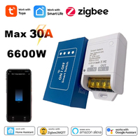 Zigbee Smart Switch 30A 6600W High Power Circuit Breaker Switch Module Smart Relay Timer Tuya Remote Control Alexa Google Home