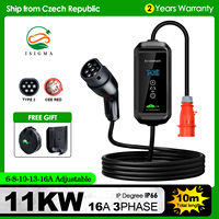 Isigma Portable EV Charger 16A 11KW Type 2 IEC 62169 Wallbox Time Delay Home Charging Electric Vehicle Hybrid Cars Total 5M $158.52