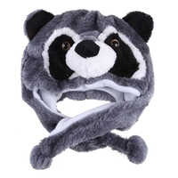 DXAE Adult Kids Winter Cute Raccoon Animal Beanie Hat with Pom Pom Ends Funny Stuffed Toy Earflap Hat Cosplay Costume