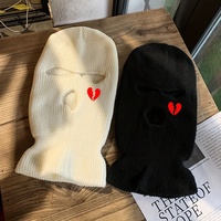Unisex Winter Knit Hat Full Face Ski Mask Heart Embroidery Hat 3-Hole Hood, Warm Windproof Beanies Outdoor Sports Balaclava Hat