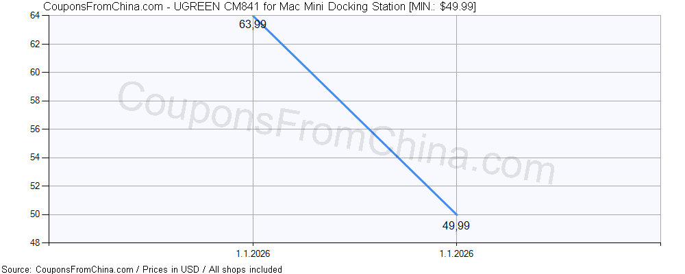 Here is price history (for all/most countries) for UGREEN CM841 for Mac Mini Docking Station. The lowest price was: $49.99.