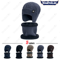 Winter Outdoor Ear Protection Warm Woolen Hat Knitted Hat Plus Velvet Thickened Wool Hat With Warm Scarf 2-Piece Set 5 Colors $9.41