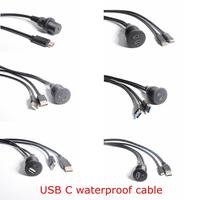 USB Type C 3.1 IP67 Waterproof 2.0 Male To Female Dashboard Flush Panel Mount Extension Cable Cord For Car Truck Boat Motorcycle